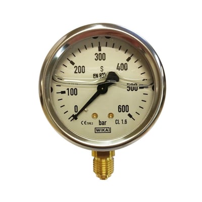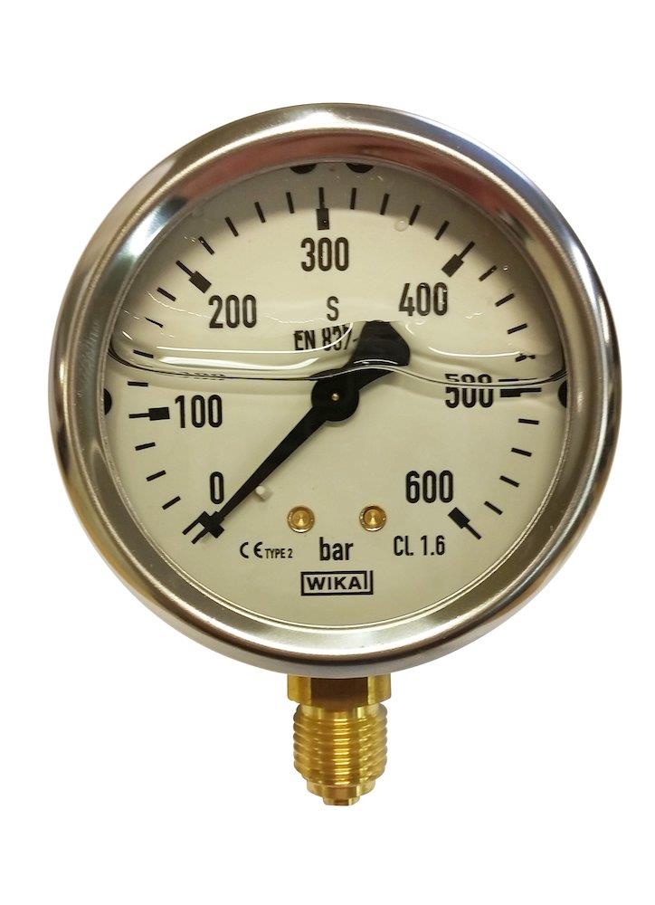 Wika manometer, glycerinfyldt, studs nedad, Bar max 600bar