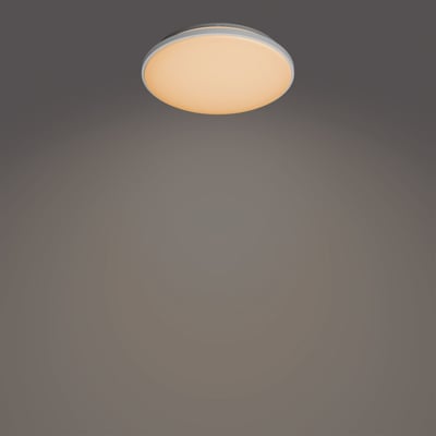 Lampen er udstyret med både Wi-Fi-funktionalitet og en medfølgende fjernbetjening, hvilket giver dig flere kontrolmuligheder. Du kan styre lyset via en app på din smartphone eller bruge den praktiske fjernbetjening for hurtig justering. Det enkle, runde design i hvid gør, at lampen passer diskret ind i de fleste indretninger.