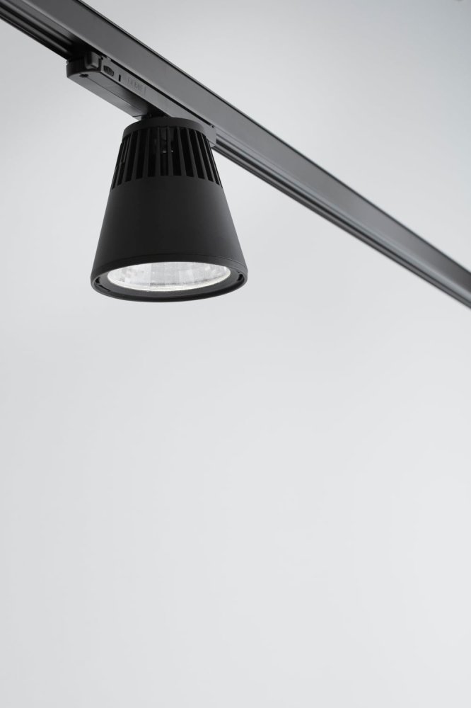 Spotten er udstyret med en indbygget LED lyskilde, der sikrer en lang levetid og høj energieffektivitet. Den er ideel til butikker, udstillingslokaler og andre områder, hvor der er behov for fokuseret og kvalitetsbevidst belysning.