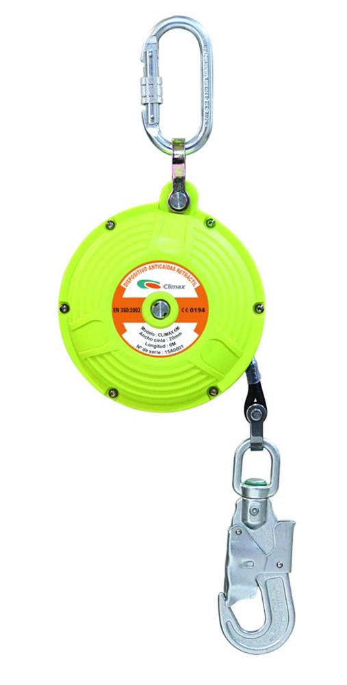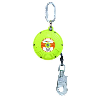 6 m faldsikringsblok i stærkt ABS materiale. Med skruekarabiner og brugervenlig krog med swivel, der sikrer, at livlinen ikke bliver snoet under arbejdet. Automatisk bremsesystem.