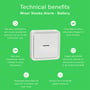 Alarmen er udstyret med en kraftig sirene, der lyder med op til 85 dB, og den giver tydelige beskeder via appen samt med indbyggede lysdioder. Den er nem at placere overalt i hjemmet og kan kobles sammen med andre røgalarmer, så alle alarmer aktiveres samtidigt i tilfælde af brand – også selvom internetforbindelsen skulle svigte. Batteriet har en levetid på op til 10 år.