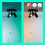 Med WiZ Imageo full color spotlamper kan du sætte fokus på de ting, du elsker i dit hjem. Denne moderne lampe i sort har fire justerbare spot hoveder, der giver dig mulighed for at fremhæve specifikke områder og genstande.