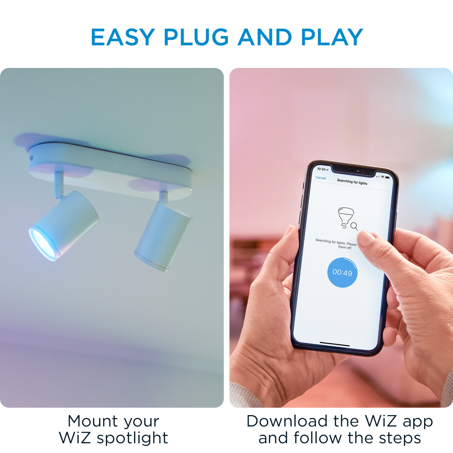 - Styr lyset via WiZ appen, stemmen eller en traditionel kontakt.