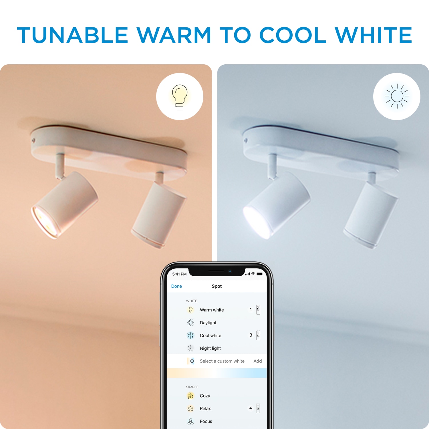 WiZ Imageo loftlampen er perfekt til at sætte fokus på de ting, du holder af. Med to justerbare spothoveder kan du nemt rette lyset derhen, hvor du ønsker det.