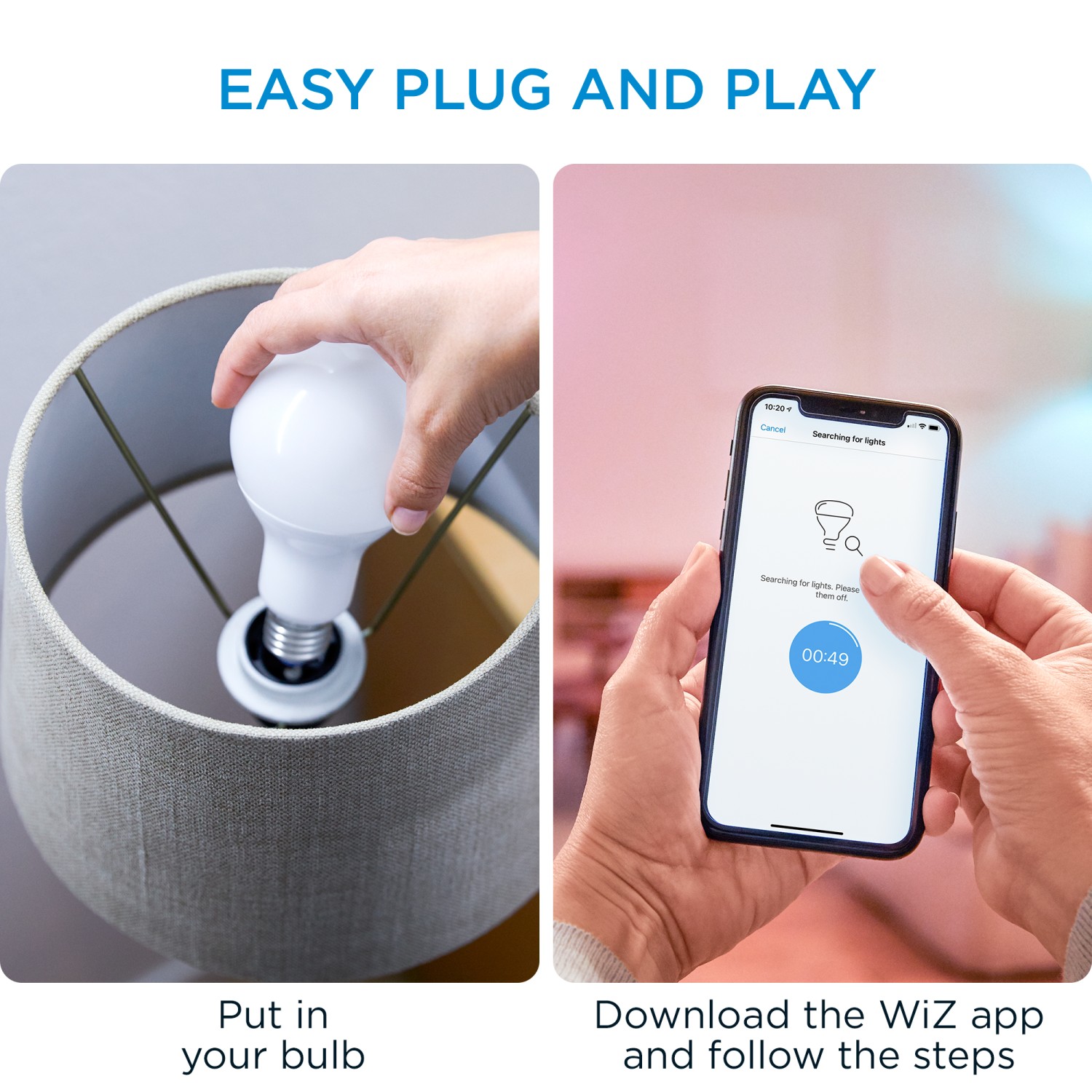 Smart LED pære fra WiZ, der erstatter 100W. Styr lyset via Wi-Fi med app eller stemme.