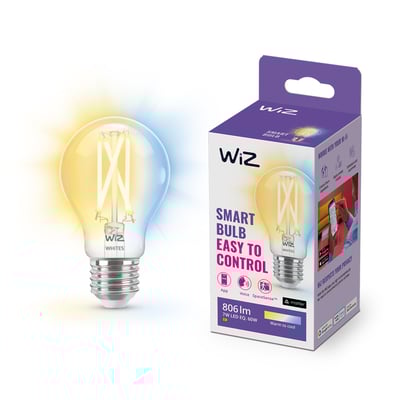 Smart LED-pære med E27-fatning og justerbar farvetemperatur (2700-6500K). Filament design med synlige LED-tråde. Kan styres via WiZ appen.