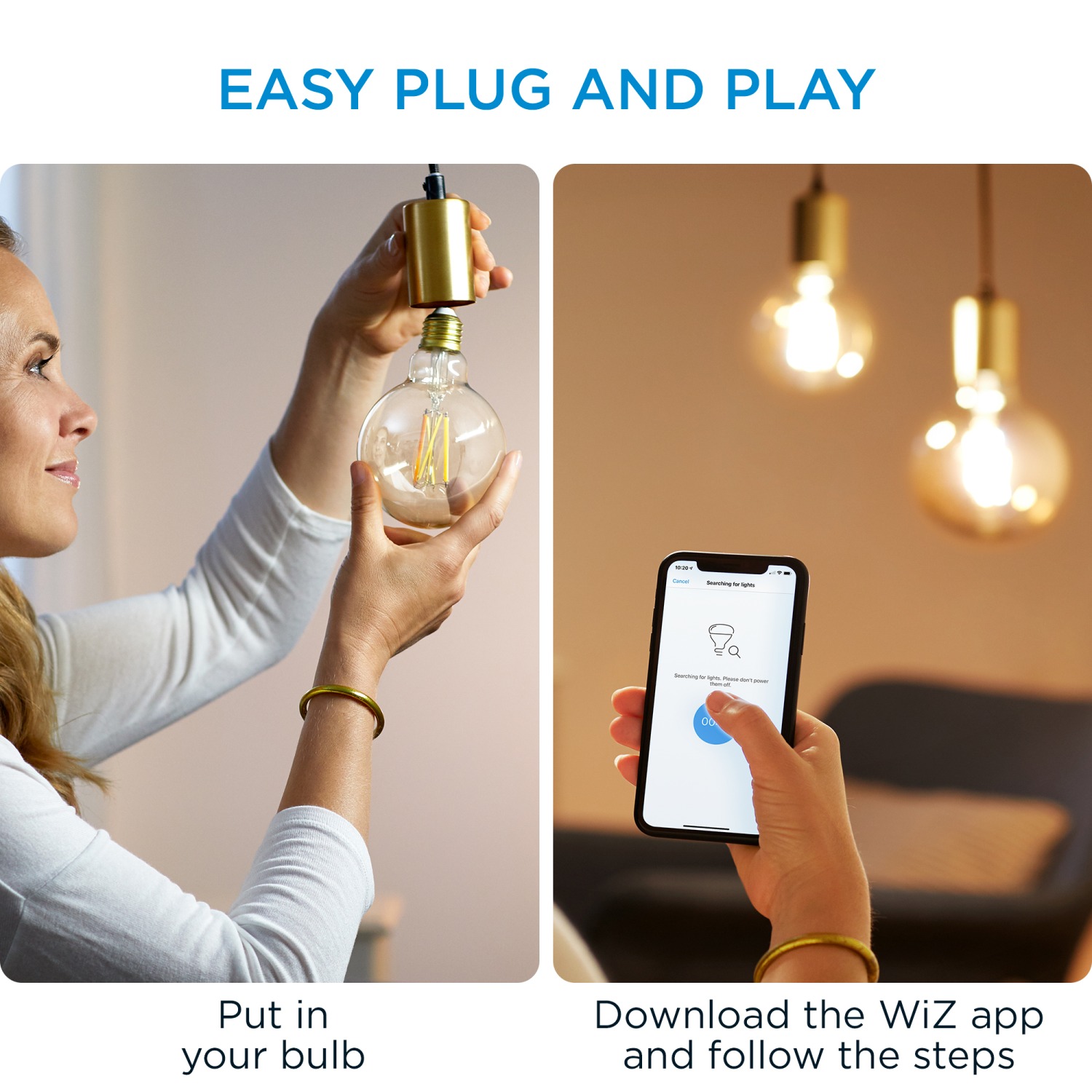 Filament Clear G125-pæren er den perfekte elegante og omkostningseffektive smart-pære til hjemmet.