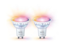 WiZ GU10 LED spot med 4,7W RGB-funktion, der erstatter en 50W halogenpære. Giver et bredt spektrum af farver og justerbart hvidt lys fra 2200K til 6500K.