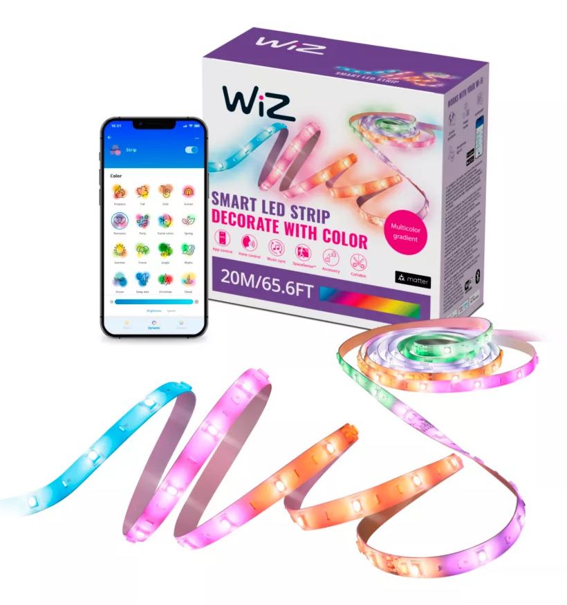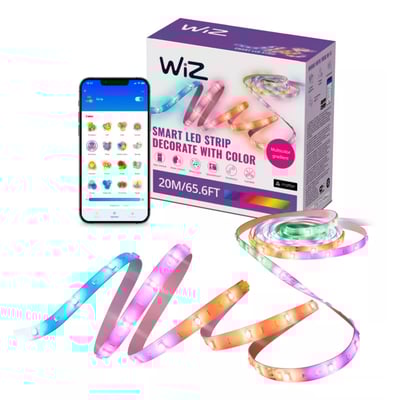 Smart LED strip fra WiZ med RGBIC farver og en længde på 20 meter. Styr lyset via WiZ appen eller stemmen.