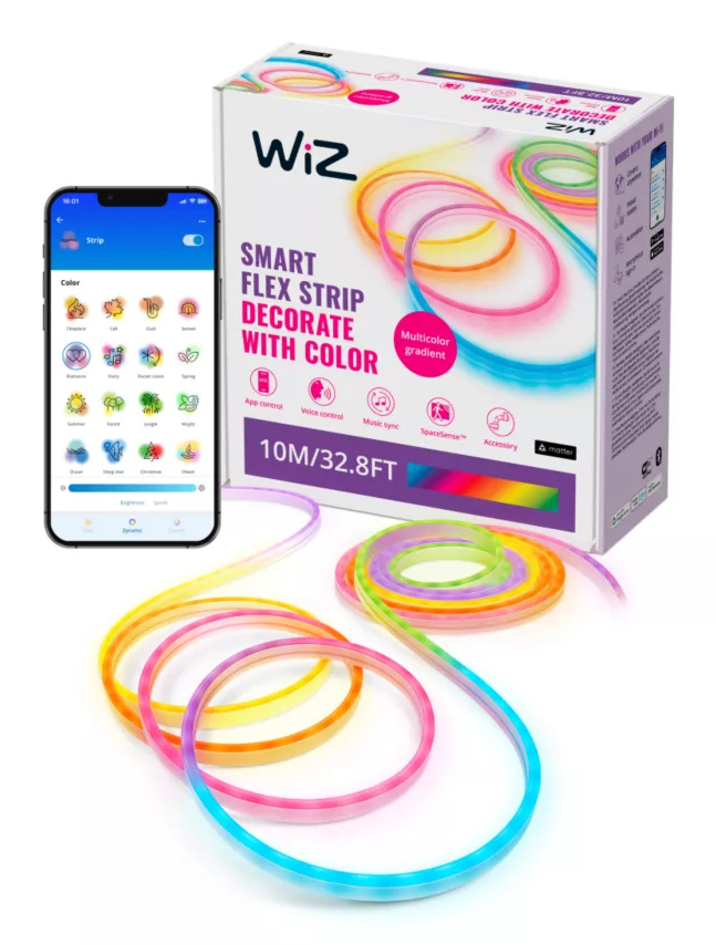 WiZ Neon RGBIC LED strip på 10 meter med Type-C tilslutning. Skab stemning med et væld af farver og dynamiske lyseffekter.