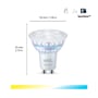 WiZ Whites GU10 pæren bringer intelligent belysning til dit hjem med enkel WiFi-forbindelse, som gør det nemt at styre lyset direkte fra din smartphone eller stemmeassistent. Med en lysstyrke på 345 lumen og en farvegengivelse på Ra90 sikrer denne LED-pære et naturligt og behageligt lys, som gengiver farver i rummet præcist. Den bruger kun 4,7W og er dermed både energibesparende og miljøvenlig.