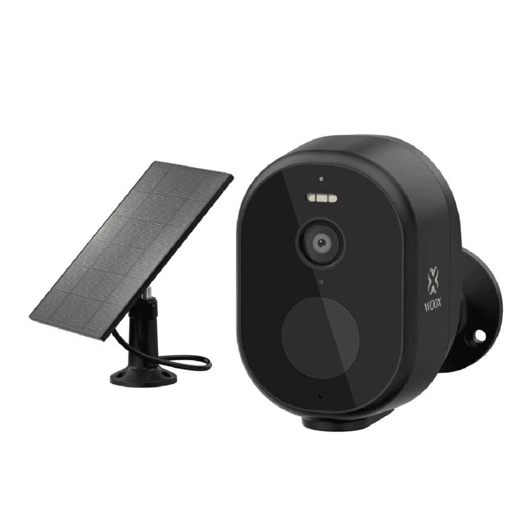 Smart trådløst udendørskamera med solpanel. Nem installation og fjernovervågning via Woox app.