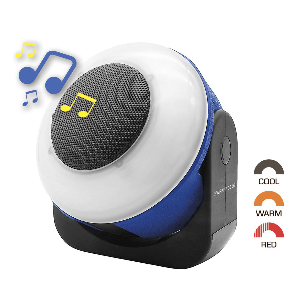 Smart arbejdslampe med indbygget 5W bluetooth højtaler og 4 forskellige LED lys funktioner (varmt, koldt, rødt, blinkende rødt). Lyset kan drejes i en 180 grader vinkel.