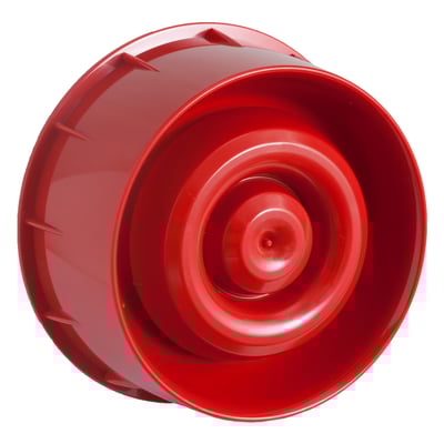 Rød WSO-PR-I33 AP200 vægmonteret lydgiver med isolator. Anvender B501 detektorsokkel og har et strømforbrug på 0,225 mA.