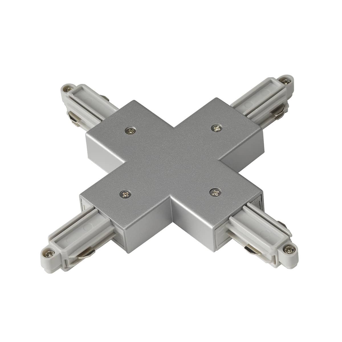 Med sit neutrale grå design integreres X-stykket diskret i de fleste miljøer, og dets konstruktion i plast gør det både let og nemt at håndtere under installation. Dette samlestykke er en essentiel komponent for at udvide og tilpasse dit 1-fasede skinnesystem effektivt.