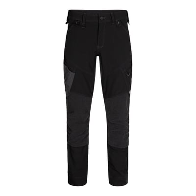 Robuste FE Engel X-Treme arbejdsbukser i sort med stretch for optimal bevægelsesfrihed og komfort. Ideelle til krævende arbejdsopgaver.