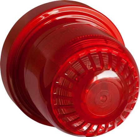 Trådløs blitz XPA-TE med sokkel i rød. Inkluderer batterier og underlag for nem installation og brug.