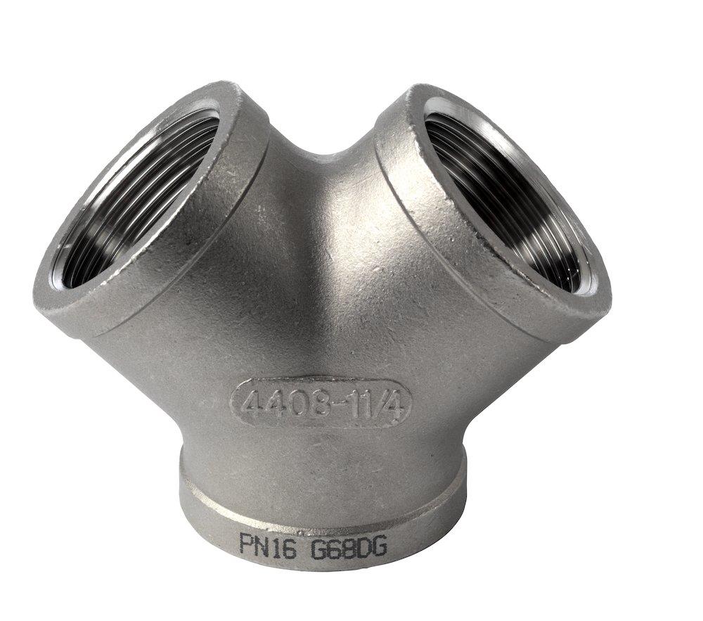 Dette Y-stykke er udført i syrefast stål og er designet med BSPP gevindfitting i henhold til ISO 228-1G standarden. Det kan anvendes til drikkevandsinstallationer, da den rustfri stålkvalitet ligger indenfor standarden EN 1.4000 til EN 1.4999.