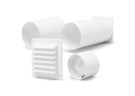 Ydervægskittet er kompatibelt med ventilatorer, der har en studs på Ø98-100 mm. Det passer til vægtykkelser op til 310 mm. Hvis din væg er tykkere end 310 mm, kan du nemt supplere med ekstra modulrør for at opnå den ønskede længde.