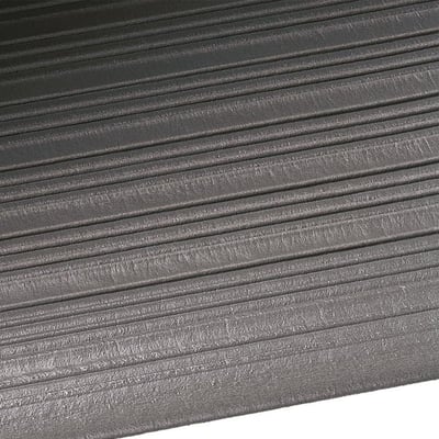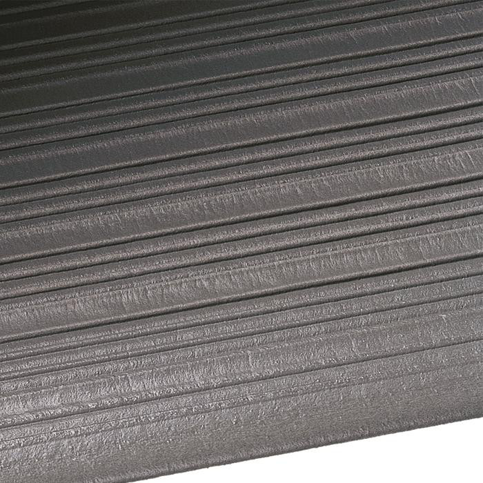Klassisk arbejdspladsmåtte af opskummet vinyl. Ribbemønstret overflade giver god skridsikring, og afrundede kanter mindsker snublerisikoen. Let at tilpasse.