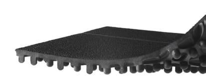 Måttens underside er designet med små knopper, der løfter den fra gulvet. Dette giver mulighed for effektiv dræning og ventilation, hvilket hjælper med at holde arbejdsområdet tørt og rent. Modulkonstruktionen gør det nemt at tilpasse måtten til den ønskede størrelse, og de faste forbindelser sikrer en stabil samling.