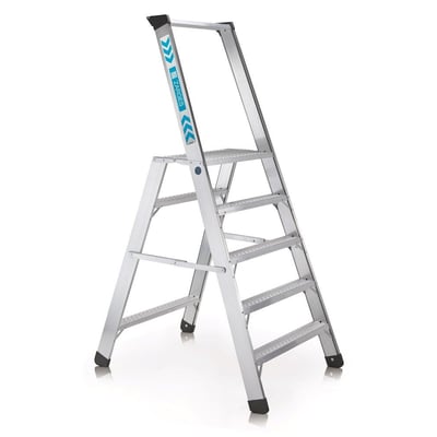 Denne Zarges trappestige er designet til professionel brug og tilbyder en sikker og stabil platform for en række arbejdsopgaver.