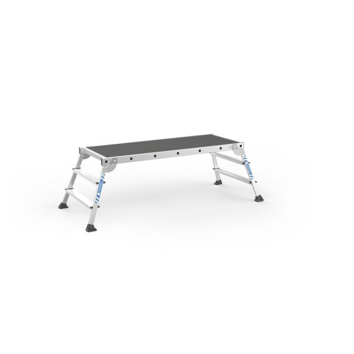 Denne sammenklappelige arbejdsplatform fra Zarges er designet til maksimal sikkerhed og komfort. Med ekstra dybe trin på 92 mm sikres bekvem og stabil arbejdsstilling. Platformen har en tilladt samlet belastning på 300 kg, hvilket gør den velegnet til brug af to personer samtidigt.