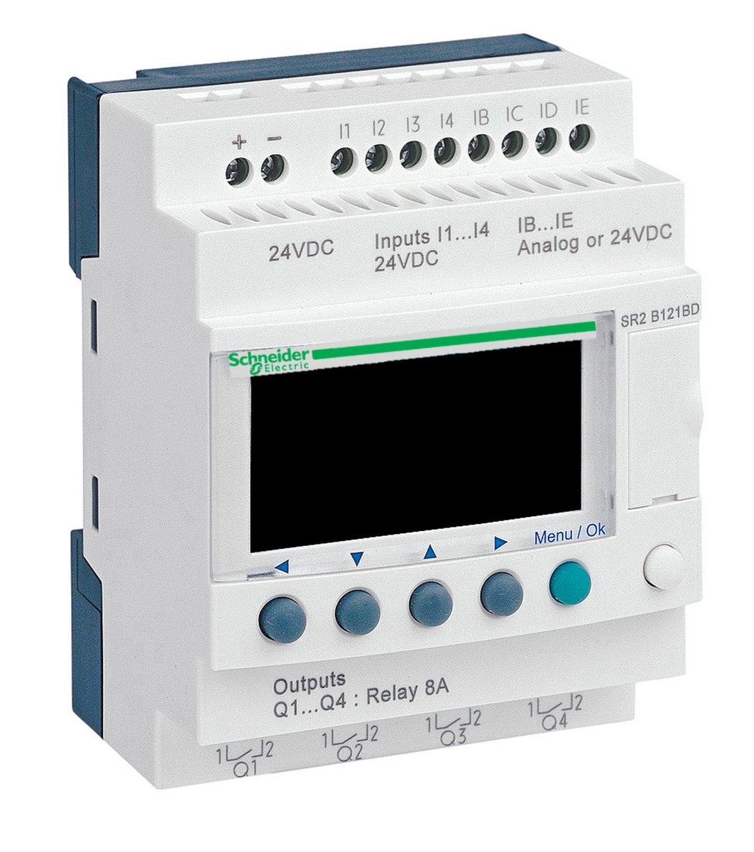 Zelio 8I / 4U relæ med ur er ideelt til styring af enkle automationssystemer i byggeri og industri.