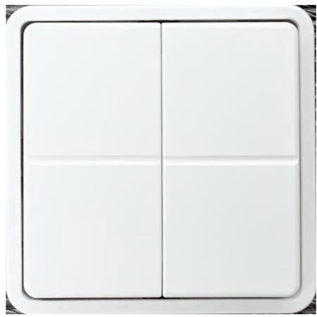 Trådløst batteritryk med CR2430 batteri (ca. 5 års levetid). Fire taster til tænd/sluk, dæmpning og justering af farvetemperatur. Passer i FUGA rammer og er beregnet til Zigbee moduler med Tunable White.
