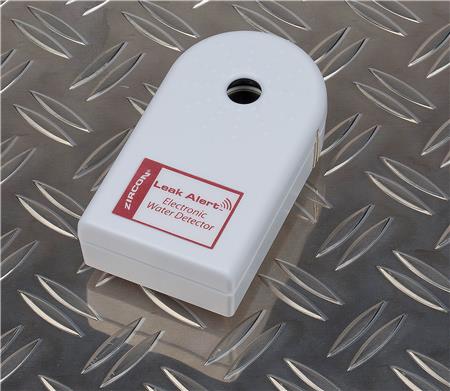 Zircon Leak Alert er en elektronisk vandlækagealarm, der placeres, hvor der er risiko for vandskade, f.eks. under opvaskemaskinen eller ved afløb.